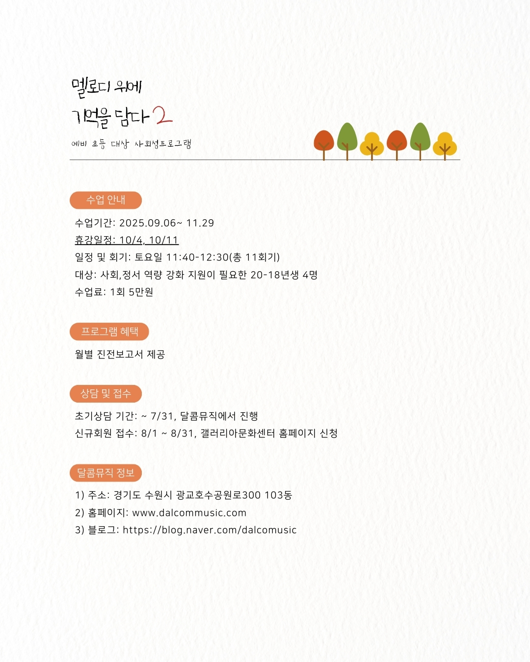 달콤뮤직 여름학기 사회성수업 안내