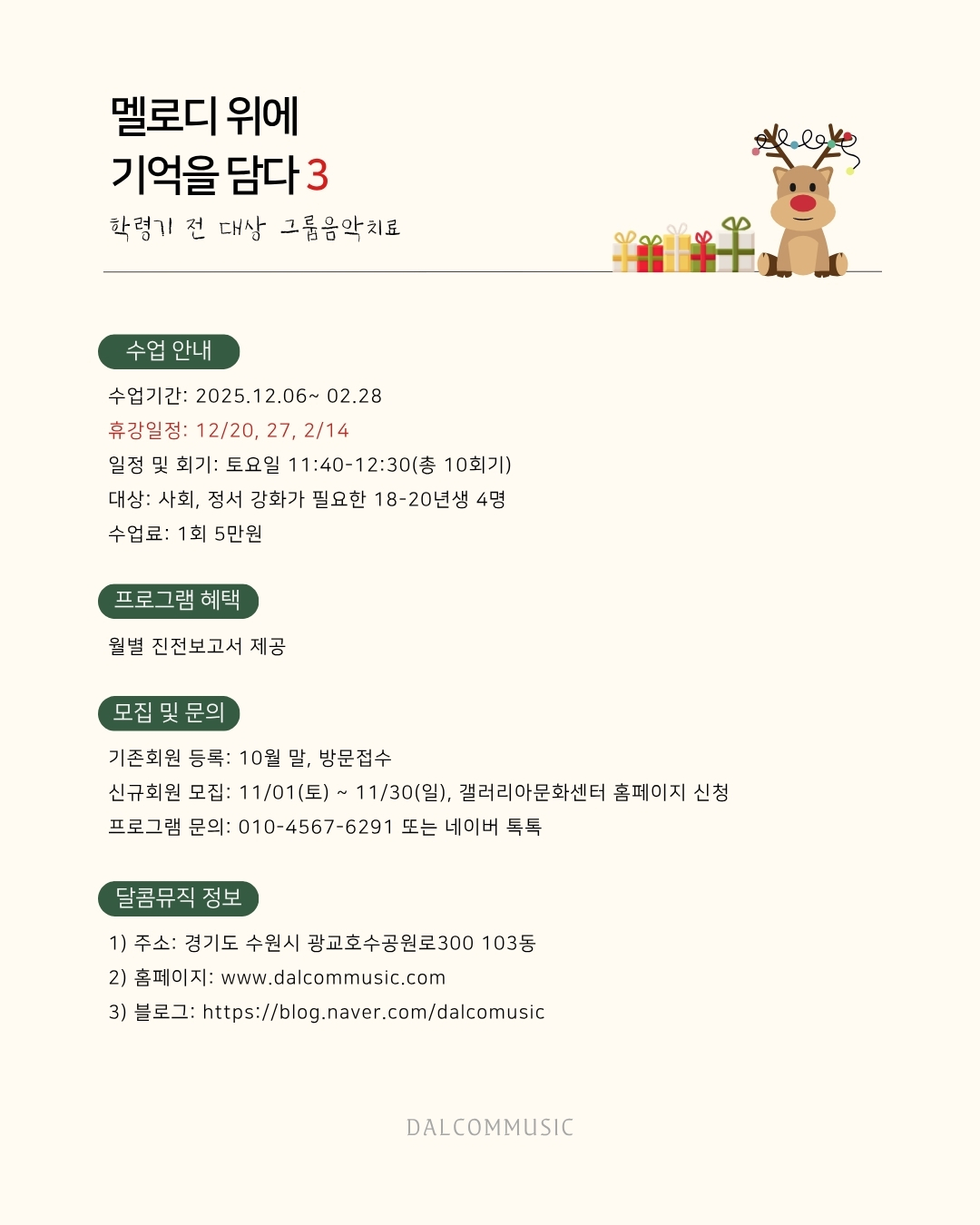 [공지] [18-20년생 사회성그룹] 2025, 겨울학기 그룹음악치료 모집 안내